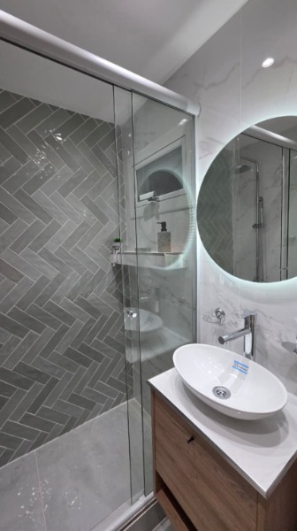 -BAÑO PRINCIPAL CON MAMPARA CORREDIZA DE VIDRIO TEMPLADO.