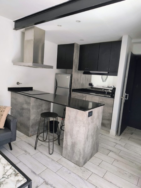AL INGRESO LIVING COMEDOR CON COCINA CON BARRA. BAÑO COMPLETO CON DUCHA.