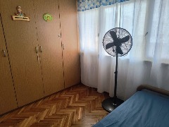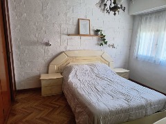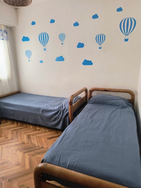 DORMITORIO PRINCIPAL CON SOMMIER DE DOS PLAZAS Y VENTILADOR DE PIE. SEGUNDO DORMITORIO CON DOS CAMAS DE UNA PLAZA .