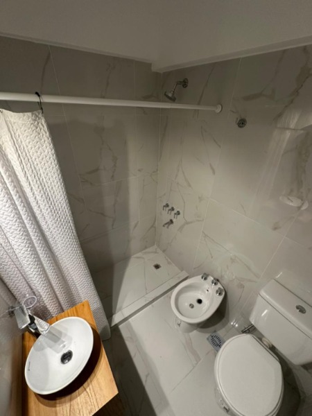 BAÑO COMPLETO REVESTIDO EN PORCELANATO.