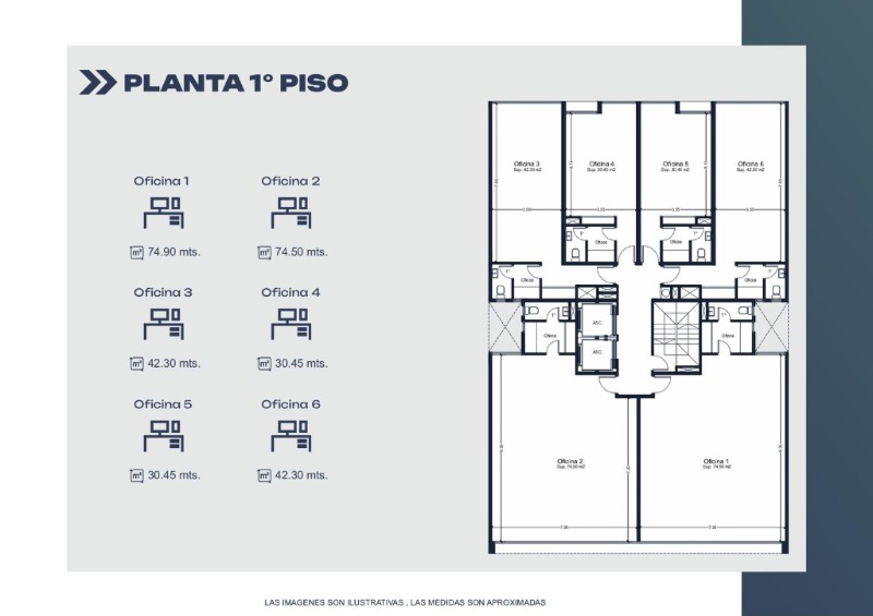 OFICINA 1 A LA CALLE DE 74,90 MTS.2 U$S 134,820.-